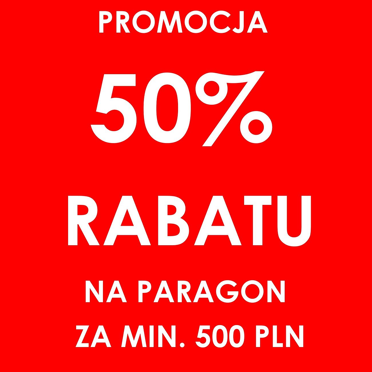 50% rabatu na paragon za min. 500 zł